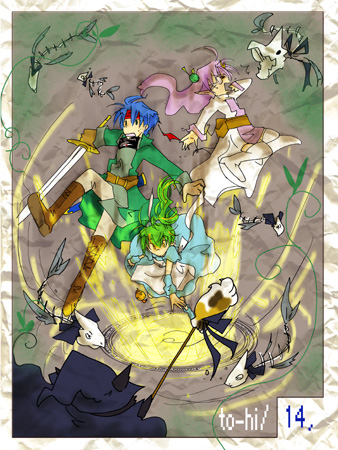 <走書き>: 10//シラ、エレイン、セシリア+ピーコ。ふわふわめんつ(?) 11//クレス&ルト 12//ヒース&モナ 13//モナ+インクル 14//トリ×トリ・メンツイメーじ。*これ、ゼッタイ森←サブタイトルw 15//リスとカンガルー(笑)/表紙のみ仮置き中 …16は、インクル!(決意書き) 18の黒い王冠が呼んでます!行くぜ!! | ![]() |